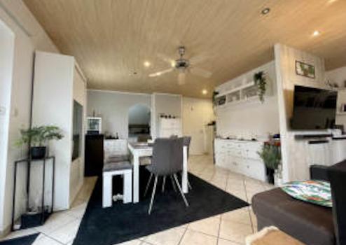 In der Vergangenheit stand im Wohn-/Essbereich übrigens ein Kamin, zum gegenwärtigen Zeitpunkt allerdings nicht. Der zugehörige Kaminanschluss