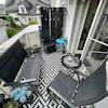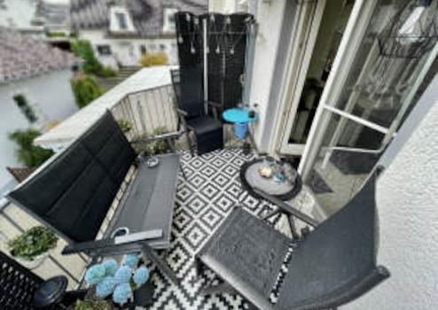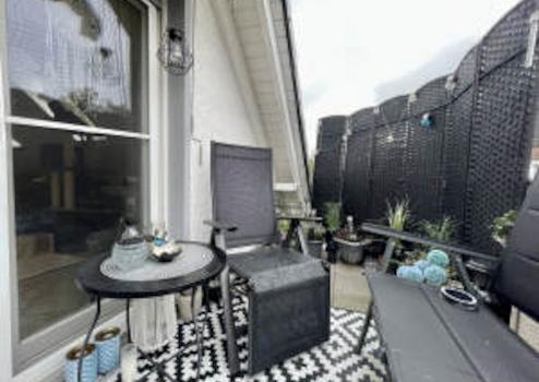 lädt zum Verweilen ein, bietet eine schöne Sicht bis hin zur Kirchturmspitze der Hohenheider Herz-Jesu-Kirche und ist anteilig mit 3,26 m² in der Wohnfläche berücksichtigt.