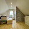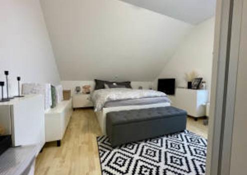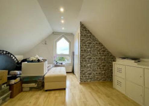 Beide Etagen verfügen zwar über Dachschrägen, die aber kaum hinderlich beim Stellen von Möbeln sind.