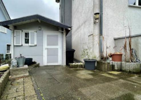 sowie eine gepflasterte Freifläche vorne am Haus im Stile einer Terrasse