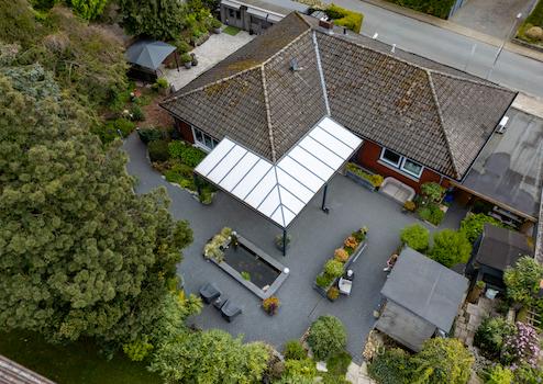 Die Einfahrt bietet Platz für ein Auto, daneben gibt es einen abschließbaren Carport für ein weiteres Fahrzeug. Unter dem Carport befindet sich ein praktischer Holzlagerraum.