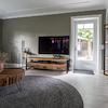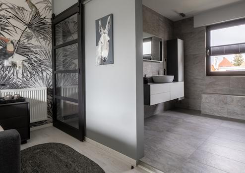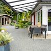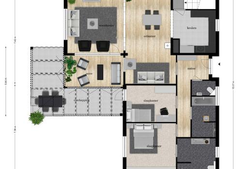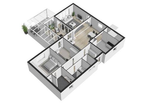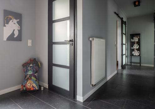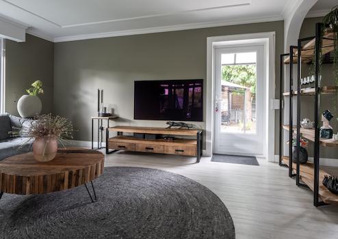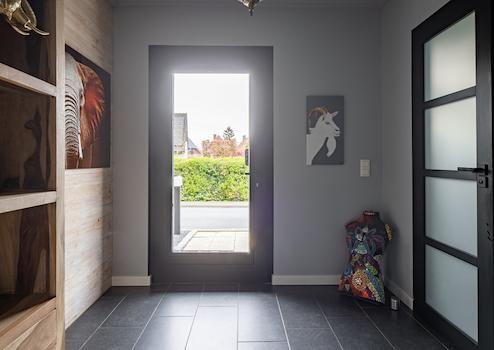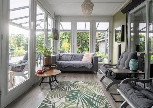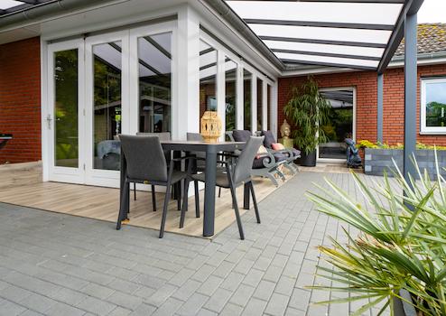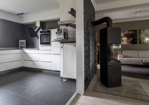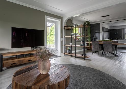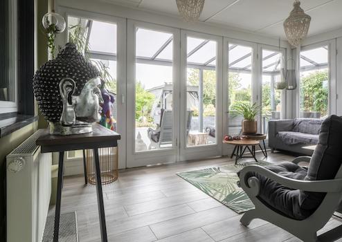 Durch die Haustür gelangen Sie in die helle Diele, die Zugang zum großzügigen Wohnzimmer und zu den Schlafzimmern bietet. Das Wohnzimmer verfügt über eine offene Küche, die für eine angenehme Interaktion mit Ihren Gästen sorgt. Ein stilvoller Design-Kaminofen bietet zusätzliche Wärme im Wohnzimmer. Dank der großen Fensterflächen ist der Raum lichtdurchflutet. Der Wintergarten, der das Wohnzimmer erweitert, ist ideal, um das ganze Jahr über den Garten zu genießen – im Winter vollständig verschließbar, im Sommer angenehm offen.