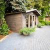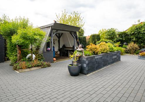 Der Vorgarten verleiht dem Haus ein charmantes Erscheinungsbild, während der rückwärtige und seitliche Garten eine Oase der Ruhe mit mehreren Sitzbereichen bietet. Im Garten befindet sich eine elektrische Sauna für zwei Personen sowie zwei Nebengebäude, die derzeit als Büro/Atelier und Gartenhaus genutzt werden.
