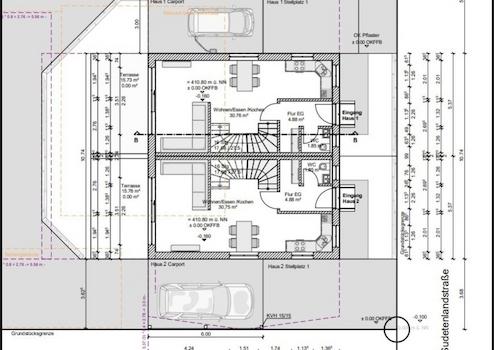Das Haus 1 und 2 hat eine Wohnfläche von ca. 116 m², 4 Zimmer, 2 Bäder mit Garten und Süd - Terrasse sowie Wohnraumähnlichen Hobbyraum sowie 2 KFZ-Stellplätze.