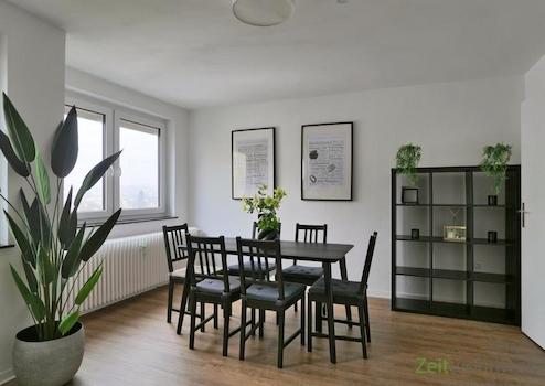 ### Please note the availability date! Bitte das Verfügbarkeitsdatum beachten! ### möblierte 3-Zimmer-Dachgeschosswohnung (=2.OG) mit Vinylböden in schöner Wohnlage am Kasseler Stadtrand; WLAN inklusive; großes Wohnzimmer mit Echcouch, Sideboard, TV und Esstisch; großes Schlafzimmer mit Doppelbett, Kommode und Kleiderschrank; kleines Schlafzimmer mit Einzelbett und Schreibtisch; Küche mit EBK; Bad mit Wanne und WC; großer Wohnungsflur mit Garderobe und Kleiderschrank; Waschmaschine vorhanden; Pauschalmiete 1.770,00 Euro; Vermietung an max. 3 Personen; Kaution 2.500,00 Euro; Endreinigung Mietersache; Mindestmietdauer 3 Monate; Pflichtangaben zum Energieausweis: Energieausweis gültig bis: 19.04.2031; Baujahr Gebäude: 1962; Energieausweis: nach Verbrauch; Energieverbrauch: 121.0 kWh/(m²a); Energieeffizienzklasse: D; Primärer Energieträger: H-Gas/schweres Erdgas