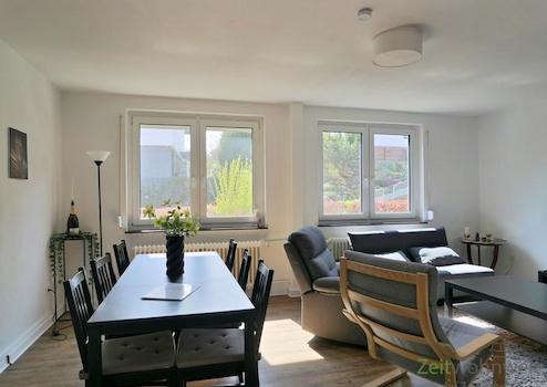 ### Please note the availability date! Bitte das Verfügbarkeitsdatum beachten! ### höbsche möblierte Wohnung in ruhiger Wohnlage in Waldkappel; WLAN; großes Wohnzimmer mit modernen rustikalen Möbeln, Sofa, Esstisch, ...
