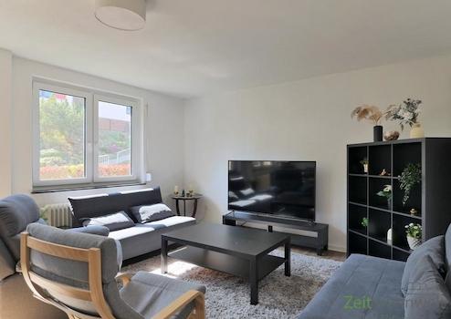 ### Please note the availability date! Bitte das Verfügbarkeitsdatum beachten! ### möblierte 3-Zimmer-Wohnung in ruhiger grüner Wohnlage am Stadtrand; WLAN inklusive; großes Wohnzimmer mit breiter Couch, Sesseln, Regalwand, Sideboard und TV, großer Esstisch; großes Schlafzimmer mit Doppelbett, Kommode und Kleiderschrank; kleines Schlafzimmer mit breitem Bett, Regal und Sessel; überdachter Balkon mit Blick zum Garten; separate Küche mit EBK; Bad mit Dusche, Wanne und WC; großer Wohnungsflur mit Garderobe und Kleiderschrank; Waschmaschine vorhanden; Abstellpkammer; Pauschalmiete 2.060,00 Euro; Vermietung an max. 4 Personen; Kaution 2.500,00 Euro; Endreinigung Mietersache; Mindestmietdauer 3 Monate; Pflichtangaben zum Energieausweis: Energieausweis gültig bis: 19.04.2031; Baujahr Gebäude: 1962; Energieausweis: nach Verbrauch; Energieverbrauch: 121.0 kWh/(m²a); Energieeffizienzklasse: D; Primärer Energieträger: H-Gas/schweres Erdgas