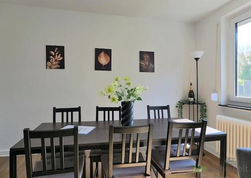 ### Please note the availability date! Bitte das Verfügbarkeitsdatum beachten! ### möblierte Wohnung in KS-Harleshausen; ruhige grüne Nebenstraße; WLAN inklusive; großes Wohnzimmer mit XL-Wohnlandschaft, rundem ...