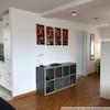 Parkettböden in Wohn-, Schlafzimmer und Diele, italienische Steinzeugfliesenböden in Bad und Küche,
