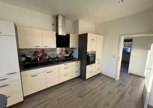 - Küche und Essbereich: Die offene Küche wurde mit einer funktionalen und ästhetischen Einbauküche ausgestattet, inklusive hochwertiger Geräte wie Herd, Backofen und Kühlschrank. Der angrenzende Essbereich ist großzügig gestaltet und bietet über eine Terrassentür direkten Zugang zum Garten, was ein ideales Wohngefühl für Familien oder Paare schafft.