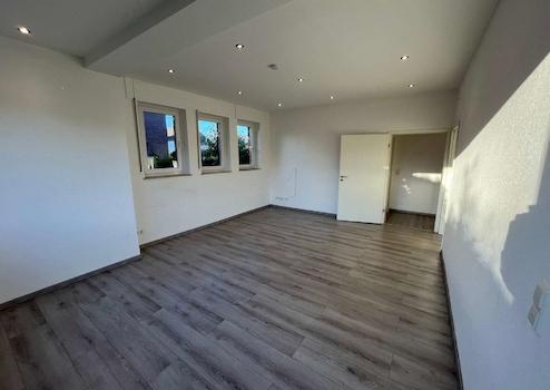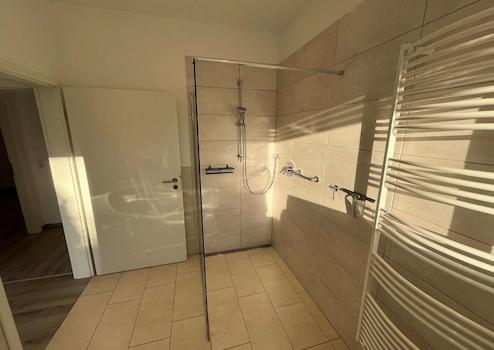 - Wohnräume: Die drei großzügigen Zimmer sind mit hellgrauem Laminat ausgestattet, der für ein modernes Ambiente sorgt. Alle Räume verfügen über Rollläden sowie zweifach isolierverglaste Kunststofffenster. Die hohen Decken schaffen ein offenes, luftiges Raumgefühl und sind mit modernen, integrierten Deckenleuchten ausgestattet.