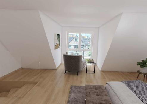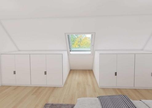 - Dachgeschoss: Das größte Schlafzimmer mit 21,93 m² besitzt zusätzliche Anschlüsse für ein Badezimmer. Auf Wunsch kann man somit auf eigene Kosten ein Badezimmer errichten lassen.
