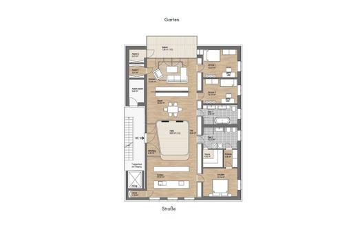 Das Highlight dieser Etagenwohnung ist zweifelsohne das innenliegende Atrium, ein reichlich 15m² großes "Patio", welches ein außergewöhnliches Wohngefühl verspricht, da es dem Wohnbereich eine einzigartige Belichtung bieten wird. Es ist nicht einsehbar und kann als grüne Gartenoase gestaltet werden.