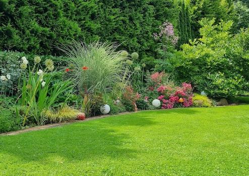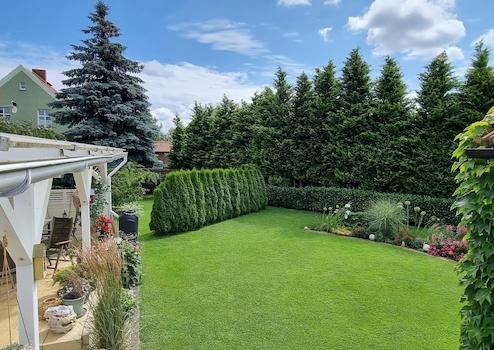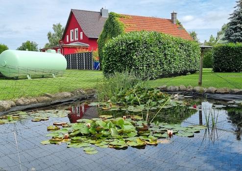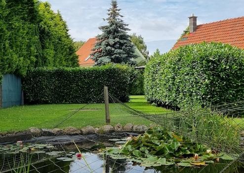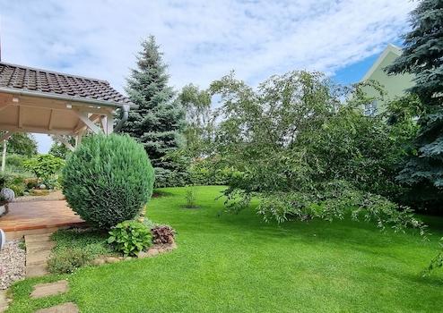 Fangen wir mal bei dem Garten an. Er ist so gestaltet, dass Sie Stellen finden, an denen Sie keiner sieht, wenn Sie ein Sonnenbad nehmen möchten ;-). Laufen Sie auf Rasen, der Sie fast schweben lässt, wie auf einem superweichen Teppich. „Dem Rasimir sei Dank.“ Der Rasenroboter sorgt für herrliches Grün und spart Ihnen so manche Stunde Arbeit.