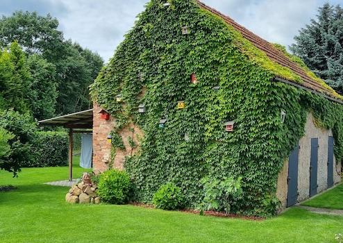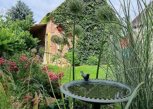 Im Garten befindet sich auch das aus Backsteinen errichtete Nebengebäude. Es bietet Platz für verschiedene Hobbys.