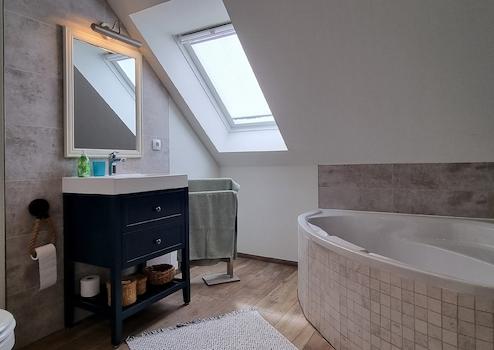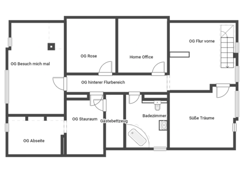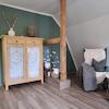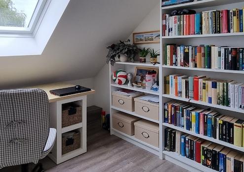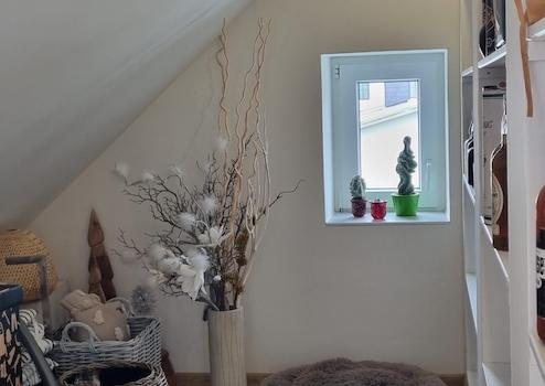 Hier ist mehr Platz, als man von außen vermuten mag. Gleich neben der Treppe befindet sich eine behagliche Leseecke. Sie kann und wird Sie in ferne Welten entführen. Wenn die Augen dann langsam zufallen, gehen Sie in das Schlafzimmer, gleich gegenüber. Ein Raum für Gäste, das Bad mit der schönen Wanne, ein Raum für Home Office, ein Kinderzimmer und ein Bereich für alle Dinge, die man nur gelegentlich benötigt, ist auch noch da.