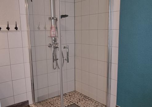 Die Duschfläche ist groß genug, um zu zweit zu duschen.