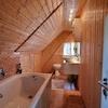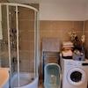 Das moderne Bad befindet sich im Erdgeschoss und kam 2008, im gleichen Jahr, wie der Hausanschlusskasten. Die Elektroleitungen sind bereits in Kupfer gehalten. Die Gastherme ist von 2006. Sie ist im kleinen Keller untergebracht. Das Dach ist bereits gedämmt (Rockwool) und der Hut des Hauses ist mit edlen, engobierten Dachsteinen und dann ist auch noch die Fassade gedämmt.