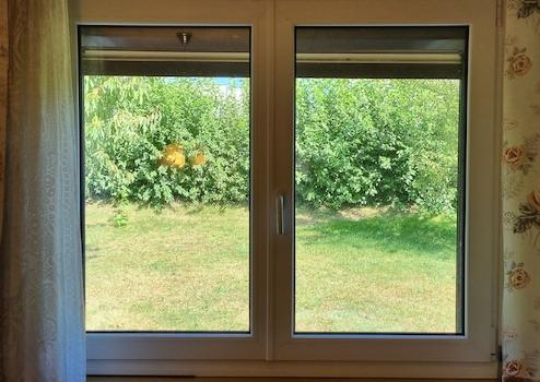 Die Dachziegel sind schon etwas älter, wurden aber 1996 neu beschichtet, der Schornsteinkopf wurde 1999 saniert und die Fenster kamen zwischen 2000 und 2017.