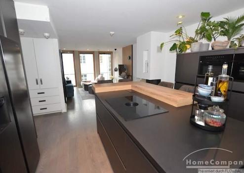 Von der Küche aus gelangt man auf die große Terrasse der Wohnung. Zur Wohnung gehört ein Garagenstellplatz . Im Fahrradkeller befindet sich ein eigener Stellplatz für ein E-Bike mit Ladestation.