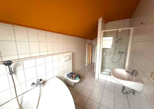 Besonders praktisch: Geräumiges Tageslichtbad mit Wanne und Dusche sowie separates Gäste-WC!
