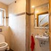 Badezimmer mit Wastisch, ebenerdiger Dusche, Sauna.