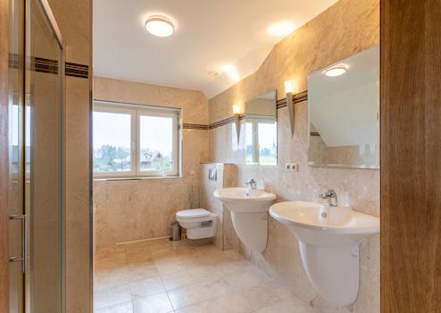 Die Villa ist vollständig unterkellert und bietet dadurch zahlreiche Nutzungsmöglichkeiten. Das Untergeschoss umfasst eine große Garage, mehrere Abstellräume und einen Innenbereich, der bereits für den Einbau eines Schwimmbads vorbereitet ist – perfekt für ultimative Entspannung innerhalb der eigenen vier Wände. Darüber hinaus ist das Haus mit einem nachhaltigen Heizsystem ausgestattet: zwei Erdwärmepumpen und Fußbodenheizung in allen Räumen garantieren Energieeffizienz und Wohnkomfort.