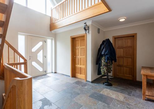 • Großteils Schieferfliesenböden.