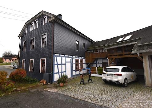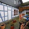Eternitschiefer an 2 Seiten, teilweise Sichtfachwerk und Holz