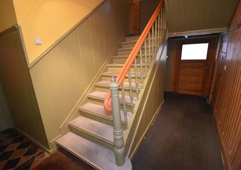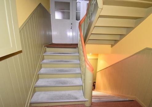 Holztreppe mit Handlauf und PVC – Rillenbelag, Sanierung inkl. Wände (2013)