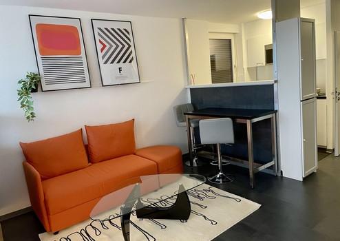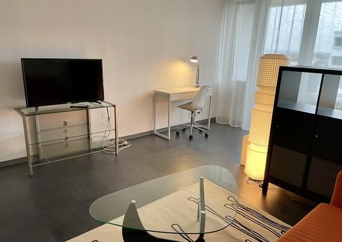 Stylische, voll ausgestattete 1-Zimmer-Wohnung mit Balkonblick auf die EZB