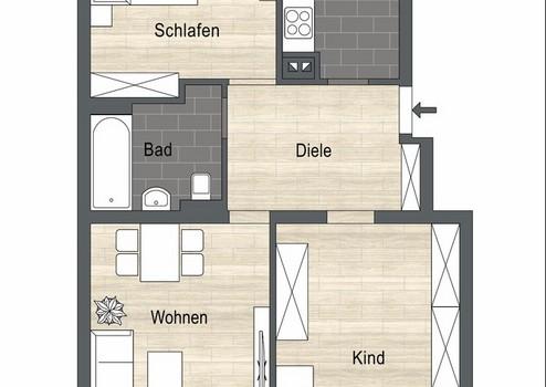 Die Wohnung überzeugt durch einen sehr guten Grundriss mit einer praktischen Raumaufteilung, die eine optimale Nutzung der Wohnfläche ermöglicht. Die großzügigen Räume bieten viel Platz für individuelle Gestaltungsmöglichkeiten und eignen sich ideal für Paare, die ein Homeoffice benötigen, oder für Familien, die modernen Komfort und eine zentrale Lage zu schätzen wissen.