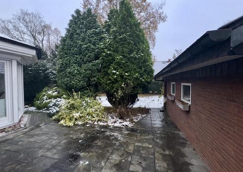 Ein separater, mit Glas überdachter Aufgang außen dient als Abkürzung zur Auffahrt und Garage, um auch bei norddeutschem Schlechtwetter Ihre Einkäufe trocken ins Haus bringen zu können.