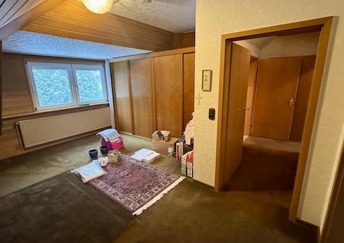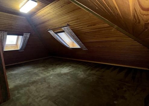 Das Obergeschoss bietet tollen Wohnkomfort durch ein vollausgestattetes Bad mit Badewanne und Dusche, 2 großzügige Schlafzimmer und einen Abstellraum. Die Dachschrägen sind vertäfelt.
