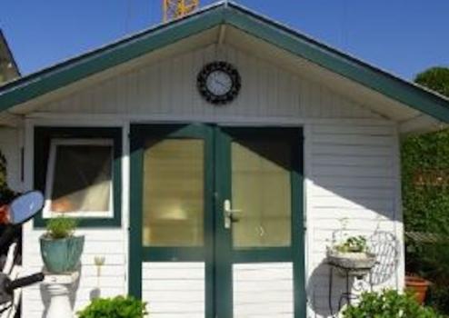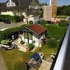 Terrasse liegt an der Südwestseite und ein mit Betonplatten befestigter Weg verläuft an der