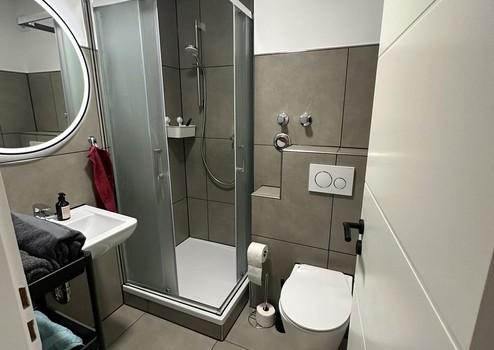 •Badezimmer: Ausgestattet mit edlen Markenarmaturen und großformatigen, stilvollen Fliesen