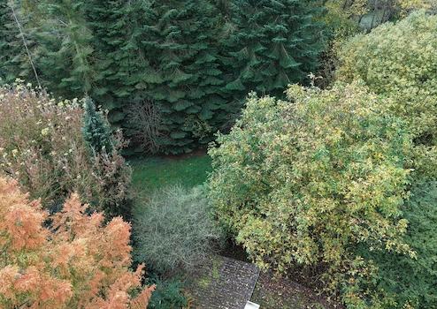 Grundstück hat herrlichen alten Baumbestand, viel Wiesenfläche und keinen Nachbarn