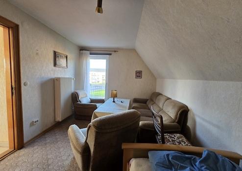 Die Räumlichkeiten des Hauses umfassen insgesamt 3 Zimmer. Der Grundriss im Erdgeschoss lässt sich ohne großen aufwand verändern. Hier haben Sie die Möglichkeit ein 3 Schlaf oder Kinderzimmer im EG einzurichten. Neben den 2 Schlafzimmern bietet das Haus auch ein geräumiges Wohnzimmer, das zum Entspannen und Verweilen einlädt. Die Küche ist funktional eingerichtet und bietet ausreichend Platz für die Zubereitung von Mahlzeiten. Das Badezimmer verfügt über eine Badewanne und bietet somit Entspannung nach einem langen Tag.