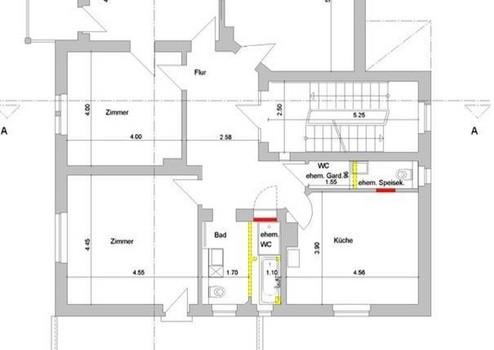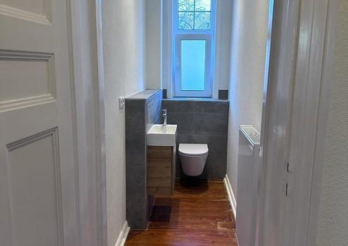 Sanierte 100 Jahre alte unter Denkmalschutz stehende Villa in sehr guter zentraler Lage in Bad Soden mit Garten. 2023/ 24 Sanierung der Wasserzufluss und Abflussleitungen, Elektrik, Bäder, Gäste-Toiletten und Küche. Die Whg. hat ein Tageslicht - Bad mit 1 Waschbecken , Dusche, WC. Wlan mit 100 Mbit/sec. steht zur Verfügung, später auch Glasfaserleitung vorhanden.