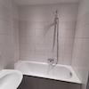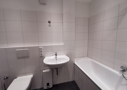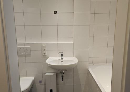 großes Fenster, Bad mit Badewanne und HängeWC, weiß