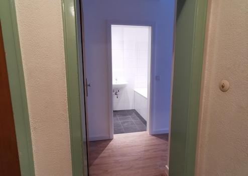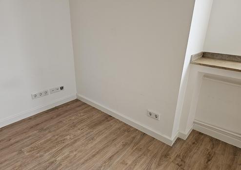 Wände Feinputz weiß, neue Elektroinstallation, Boden Eichefarben,
