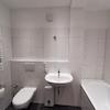 Das zweckmäßige und gut geschnittene Badezimmer mit