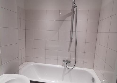 gekachelt mit anthrazitfarbenem Keramik-Boden. Anschluss für