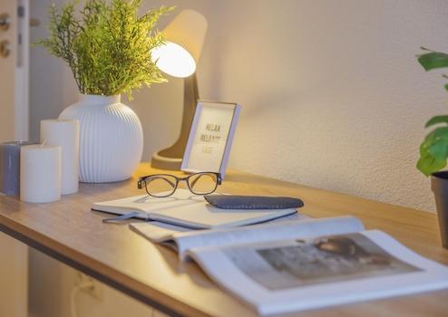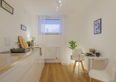 Die auf den Fotos abgebildeten Einrichtungsgegenstände, Deko und Leuchten sind nicht im Kaufpreis enthalten, können jedoch nach Rücksprache separat erworben werden. Der Waschtischunterschrank und Spiegel im Bad werden mitverkauft.