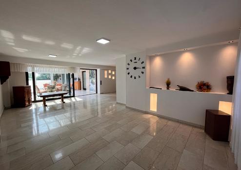 Das Erdgeschoss des Wohnhauses ist zum großen Teil mit hellen zeitlosen Marmorfliesen bestückt. Die vorhandene Fußbodenheizung kann separat für jeden Raum geregelt werden. In den Schlafräumen befindet sich Laminat oder Teppichboden.