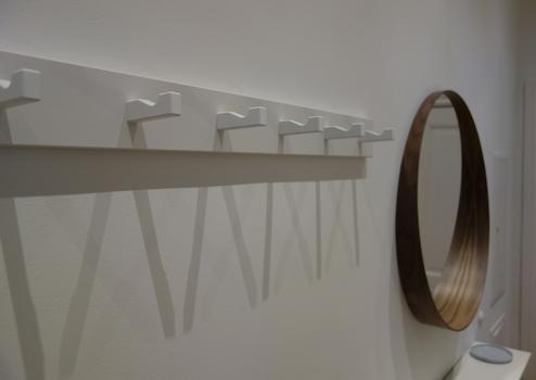 A small utility room with dryer and washing machine and space for the ironing board has been created in the apartment.