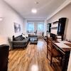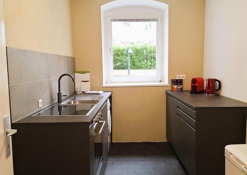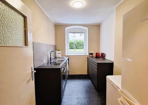 The apartment is fully equipped. A washer-dryer is already installed in the utility room and a vacuum cleaner and iron are available. In addition to the usual electrical appliances, the kitchen also has everything you need for cooking, such as a toaster, kettle, espresso machine, microwave and, of course, crockery and cutlery. The router for your internet access is installed, the costs are included in the inclusive rent, as well as the electricity costs.