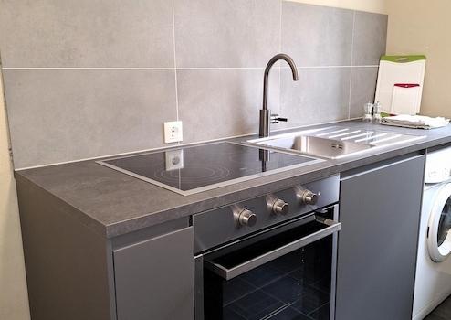 Die Wohnung ist voll ausgestattet. So ist im Hauswirtschaftsraum bereits ein Waschtrockner installiert und Staubsauger und Bügeleisen stehen bereit. Neben den üblichen Elektrogeräten bietet die Küche auch alles, was zum Kochen gebraucht wird, wie Toaster, Wasserkocher, Espressomaschine, Mikrowelle und natürlich auch Ess- und Kochgeschirr. Der Router für Ihren Internetzugang ist installiert, die Kosten sind in der Inklusivmiete enthalten, sowie auch die Stromkosten.