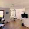 Einbauküche und ein modernes Badezimmer mit Duschbadewanne. Darüber hinaus sind sowohl ein privates