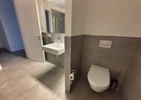 - Bad mit ebenerdiger Dusche und Glastür sowie Badewanne